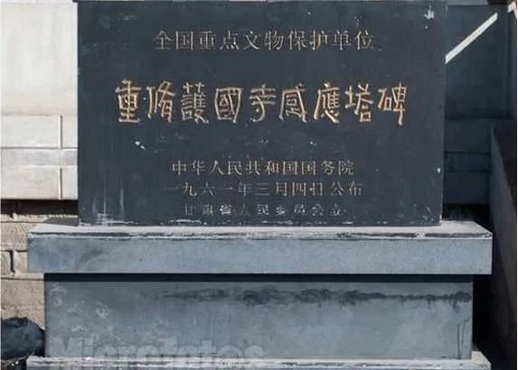 西夏碑,本名《涼州重修護(hù)國寺感通塔碑銘》,碑高26米,寬1米,厚03米。碑首呈半圓形,兩面正中用漢文和西夏文篆額,邊陰刻對稱的伎樂舞女,翩翩起舞,動(dòng)作優(yōu)美,造型準(zhǔn)確;舞女胸和手腕上有飾物,赤露上身、雙腳,下著長裙,面形肌肉豐滿,吸收了敦煌飛天的藝術(shù)特點(diǎn)。碑身的兩邊呈殺角,邊上刻忍冬紋。碑一面為西夏文,共28行,滿行65字。西夏文是一種被人們遺忘了的語言文字,無法辨認(rèn),當(dāng)時(shí)被稱為“天書”。但碑的陽面為漢文,共26行,滿行76字。張澍先生見碑陽文末尾有“天祐民安五年歲次甲戌十五日戊建”落款,“天祐民安”為西夏年號,遂判定此碑為西夏碑文,因此,人們以后稱之為西夏碑。1961年就被國務(wù)院公布列為全國第一批重點(diǎn)文物保護(hù)單位。