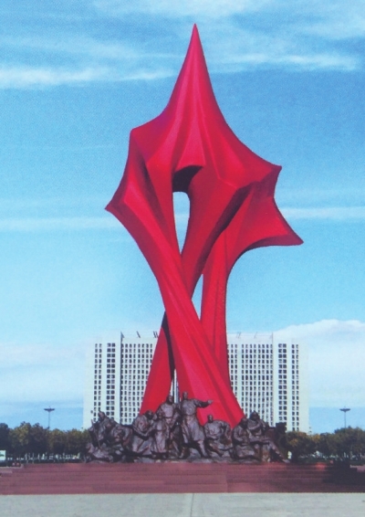 內(nèi)蒙古興安盟是新中國建立的第一個紅色革命自治區(qū),建于1947年,而位于興安盟行署前烏蘭浩特中心公園廣場就有一座何鄂先生創(chuàng)作的不銹鋼城雕《焰紅興安》,是興安盟獨具特色的標(biāo)志性紅色建筑。