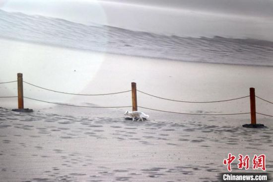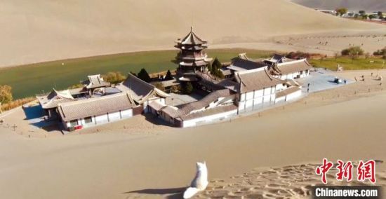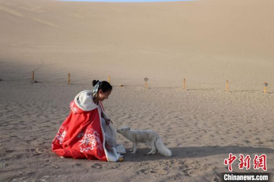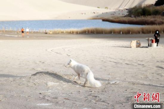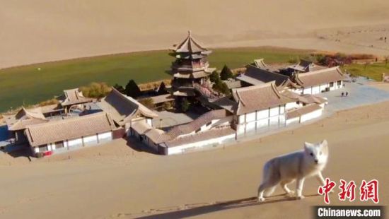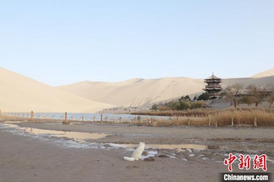 原標(biāo)題:小白狐“打卡”甘肅敦煌鳴沙山月牙泉景區(qū)