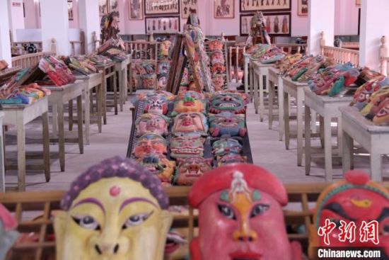 “玉面狐貍”“長(zhǎng)須鬼神”“獠牙青面”……中新網(wǎng)記者走訪該館時(shí)看到,五顏六色、形狀各異的數(shù)千面具極具“復(fù)古感”,神怪妖精或彪悍猙獰,或和藹慈祥,輪廓清晰,形象鮮明。置身其中,彷佛回到古人穿戴面具,跳動(dòng)儺舞,舉行祛災(zāi)納祥儀式的場(chǎng)景中。