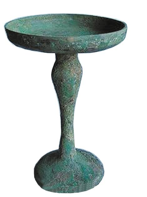 中國古代的照明工具,除掉最原始的火把,最早的是油燈而不是蠟燭,有關(guān)蠟燭的記載是漢代才有的。既然要用油燈,古人用什么器皿來盛放燈油和燈芯呢?人們找來找去,一種名叫“豆”的器皿脫穎而出。“豆”本為上古時(shí)代的一種盛食器,其上為圓盞盤,中間為或長或短的直柄,最下為喇叭或圓足形底座。簡單地說,“豆”的形狀就像高腳盤,一般用陶制,也有青銅或木制的,青銅制的用作祭祀禮器。“豆”的造型,完全符合人們對燈具的基本需求——既有能裝油和燈芯的淺淺的容器,又有方便移動的把手。于是,人們就在“豆”的基礎(chǔ)上稍加修改,用陶土燒制出了最初的高腳燈具。