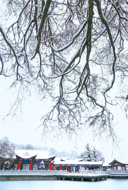 去年12月底,一位老師來西峰講學(xué),我陪先生到濕地海綿公園轉(zhuǎn)悠,剛剛步入人行道,發(fā)現(xiàn)遠處湖水中央有七八只白鷺在棲息,朝陽斜射到湖面上,水波瀲滟,像細碎的金斑,白鷺安詳?shù)叵礈熘鹈幸恢话槅瓮戎绷⒅∷埔乐桓P直纖細的鐵絲,半張著翅膀,欲飛不飛的樣子,剩下的幾只白鷺在戲水,迷人極了。