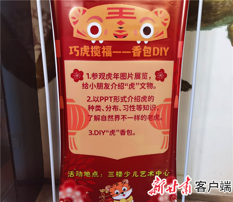 大年初二的“巧虎攬福——香包DIY”活動中,小朋友們則在講解員的介紹下,了解了虎的幾個(gè)種類及各異習(xí)性;通過“你來比劃我來猜”等小游戲,知曉了2022年北京冬奧會的舉辦時(shí)間、地點(diǎn),包含項(xiàng)目等;并在自主制作香包的過程中,體驗(yàn)傳統(tǒng)民俗魅力,感受本土文化之美。