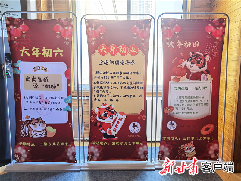 “后續(xù),還有大年初三的‘靈虎送福——虎紙漿畫DIY ’活動、大年初四的‘?;⑸?mdash;—福燈DIY ’活動、大年初五的‘金虎納福虎迎春’活動、大年初六的‘虎虎生威添‘福祿’活動’。”省博物館社會教育部主任盧冬介紹,每場活動面向約30名小朋友開展,經(jīng)過前期策劃準(zhǔn)備,除了省博物館社教部的10余名工作人員,給孩子們普及有關(guān)虎和北京冬奧會的知識,還有來自西北師范大學(xué)、蘭州二十七中等校的學(xué)生志愿者,指導(dǎo)輔助孩子們玩游戲、做手工。