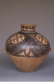(菱格紋彩陶雙耳罐)