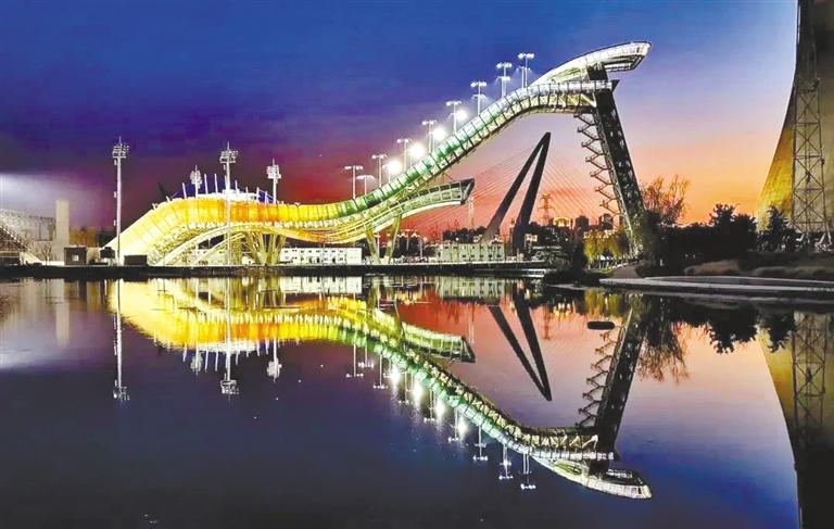 宛若敦煌“飛天”飄帶的首鋼滑雪大跳臺由賽道、裁判塔和看臺區(qū)域三部分組成,賽道長164米,賽道最寬處34米,最高點(diǎn)60米,單板選手從高處疾速下滑,通過大跳臺起跳,進(jìn)行高空空翻、回轉(zhuǎn)等技術(shù)動作!這是全球首座單板大跳臺運(yùn)動永久跳臺,也是冬奧史上第一座與工業(yè)遺產(chǎn)再利用直接結(jié)合的競賽場館。