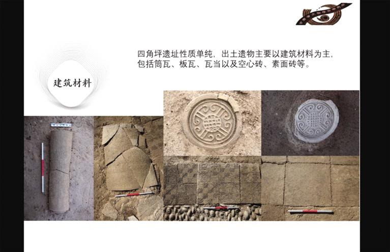 此前勘探發(fā)現(xiàn),四角坪遺址外圍為夯土圍墻,中部為面積約900多平方米的方形夯土臺基,臺基頂部四周有回廊式建筑。經(jīng)過兩年的發(fā)掘,摸清了夯土臺基的形制,發(fā)現(xiàn)了臺基中心較特殊的半地穴式建筑,以及臺基外圍第一排附屬建筑。每組建筑之間有寬約一米的夯土通道連接,建筑周圍散落各種建筑構件,如板瓦、筒瓦、瓦當、空心磚等。通過考古發(fā)掘顯示,四角坪遺址建筑體量巨大,等級分明,格局規(guī)整對稱,是秦帝國時期代表國家意志的禮制性建筑群。
