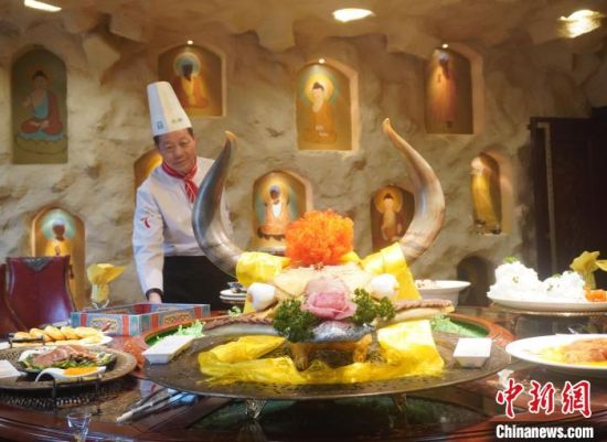 中新網(wǎng)蘭州3月29日電(張婧)“來自壁畫中的敦煌菜,背后都藏著真實(shí)存在的人或事、景或點(diǎn)。”國家特一級烹調(diào)師趙長安長期從事于敦煌菜的歸納與發(fā)展。他說,無論菜名還是菜式的賣相,都融入敦煌故事或圣境圣水,可謂“一菜一典故,一席十圣境”,讓人仿佛置身于古絲綢之路上。