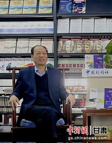 蘭州大學(xué)主辦《視野》總編輯包國(guó)憲做客中新社甘肅分社接受專訪。 九美旦增 攝