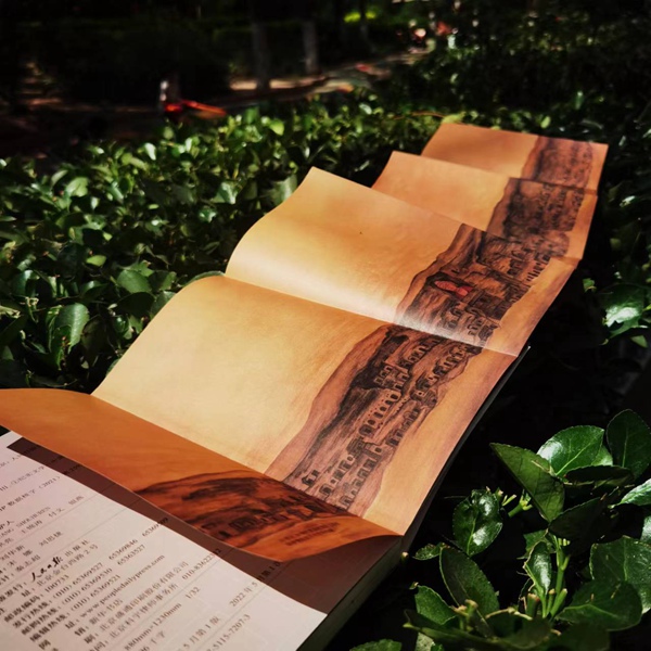 特別值得一提的是,曾作為敦煌“文化守望者”的90后插畫師陳夢楚,依據(jù)歷史資料為該書手繪原長達(dá)3.4米的全景圖,呈現(xiàn)莫高窟南區(qū)歷史圖景。這也是青年一代致敬莫高窟、致敬敦煌前輩的藝術(shù)表達(dá)。