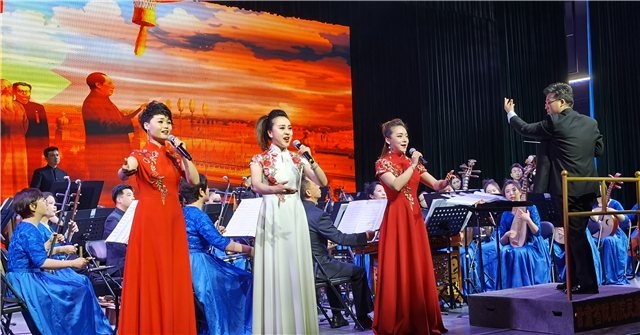 音樂觸動初心,藝術(shù)感召使命。此次音樂會既有紅色經(jīng)典曲目《高樓萬丈平地起》《山丹丹開花紅艷艷》《南泥灣》《繡金匾》,也有反映不同革命時期的優(yōu)秀歌曲《映山紅》《九兒》,更有極具地域特色的民族管弦樂《春到隴東》《隴東意象》《黃土情》等。詩朗誦《延安》作為特別節(jié)目,帶領(lǐng)廣大觀眾打開歲月的大門,重溫紅色記憶,領(lǐng)略革命先輩的豐功偉績。管弦與打擊樂《龍騰虎躍》以震撼人心的鼓聲,展現(xiàn)人民群眾生龍活虎、奮勇前進(jìn)的風(fēng)貌。而壓軸曲目歌曲《不忘初心》,則以充滿激情的歌聲,唱響廣大文藝工作者“不忘初心、牢記使命”的時代心聲。