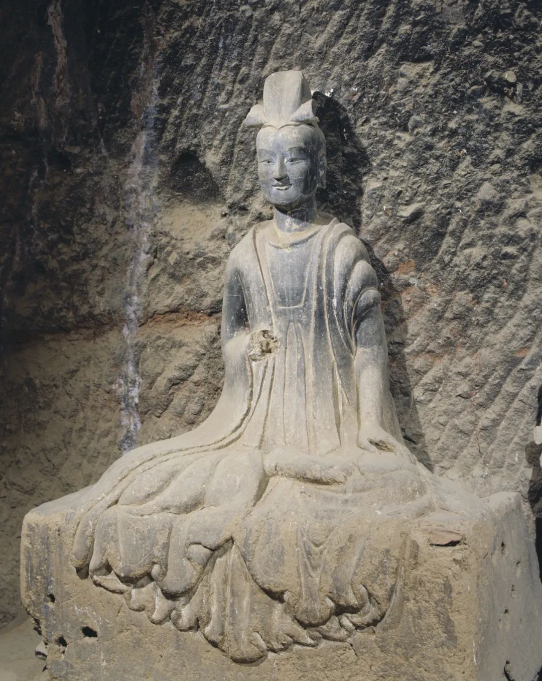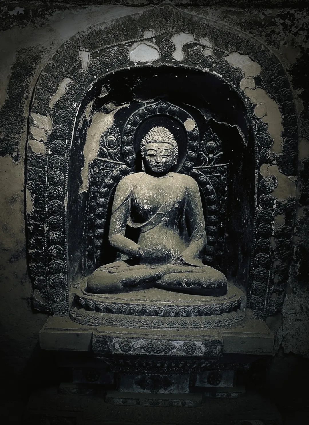 特別是佛像發(fā)髻和衣裾方面的變化尤為突出:樣式豐富的渦旋紋、水波紋和螺紋發(fā)髻交相輝映,八字形重疊衣裾和三片式衣裾并存,生動再現(xiàn)了當時南朝與中原地區(qū)不同佛教造像藝術(shù)樣式的交流與融合。