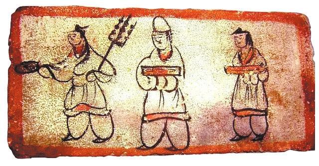 墓磚壁畫描述古人擼串場(chǎng)景。本版圖片由甘肅省博物館提供