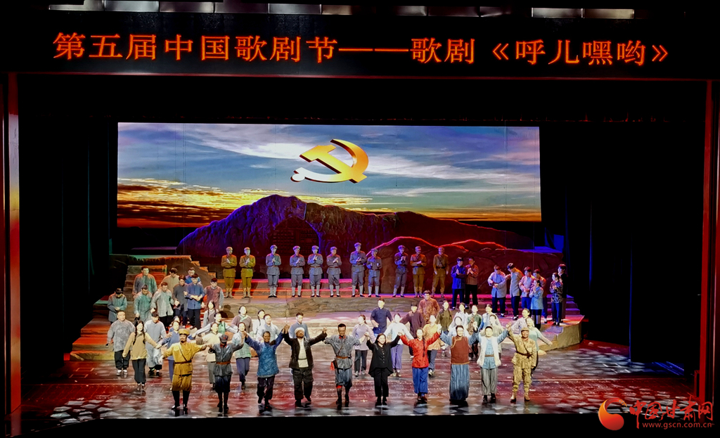 隴東情韻映江南,江山民心感人心。5月17日晚,由甘肅省歌劇院、甘肅交響樂團創(chuàng)排,以南梁革命根據(jù)地歷史故事為原型的原創(chuàng)民族歌劇《呼兒嘿喲》,伴著杭州的綿綿細雨,將隴東民歌唱進了第五屆中國歌劇節(jié)。700多名當(dāng)?shù)赜^眾冒雨觀看演出,沉浸在蕩氣回腸的革命史詩與韻味悠長的隴東民歌中,被大無畏的“南梁精神”所感染,掌聲久久回蕩。