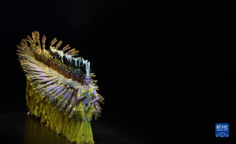 中國殘疾人藝術(shù)團(tuán)演員在敦煌大劇院表演大型情景音畫劇《千手千眼》(6月18日攝)。
