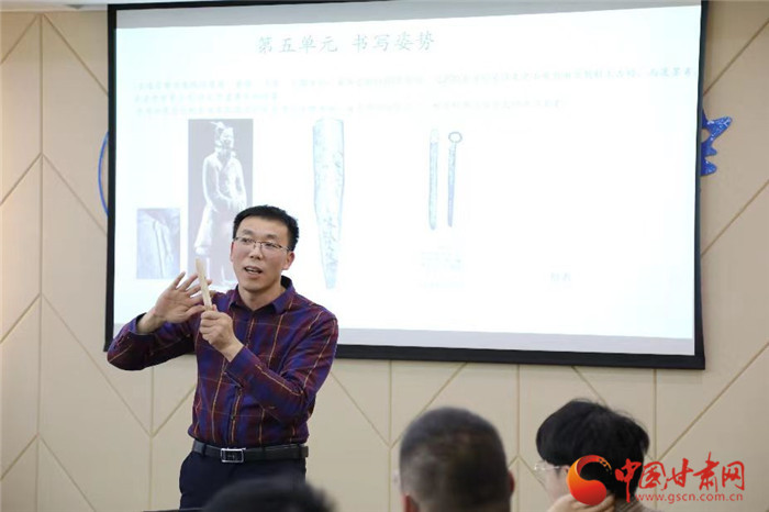 蘭州大學文學院強基計劃(古文字學)專業(yè)負責人陳曉強教授表示,古文字學強基計劃就是著眼國家緊缺,為國家培養(yǎng)古文字學科專業(yè)人才。簡牘作為古文字之一,也是同學們的必修課,通過讀簡、寫簡不僅能提高學生的專業(yè)素養(yǎng),還能培養(yǎng)同學們的心性。文學院在古文字學強基計劃同學中間推廣讀簡、寫簡效果很好,大家通過集中讀簡,探討懸泉置簡牘收獲平凡的歷史故事,了解了一個時代的生活,從而對簡牘產(chǎn)生了濃厚興趣?;诖耍m州大學文學院聯(lián)合甘肅簡牘博物館推出“蘭山論簡”讀簡班品牌活動,不設(shè)專業(yè)、不設(shè)限制,全體學生只要感興趣都可以參加,從而最大程度推廣簡牘知識。
