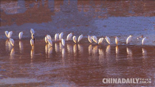 甘肅崇信:汭河白鷺群棲息,水域宛若畫卷