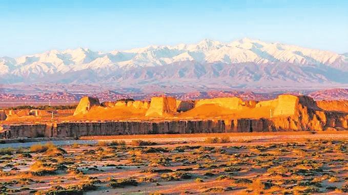 望南山,祁連山頂白雪皚皚;城前,榆木山下草場豐茂。當年牛、羊、馬、駱駝成群,生活在這里的人們過著無憂無慮富足的生活。但一千年后,駱駝城已是一座廢城,物是人非。只有高大的城墻和殘垣斷壁說明它曾存在過,也輝煌過。