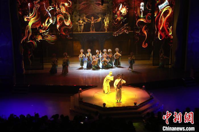 2月15日晚,游客在觀看全球首部洞窟式沉浸體驗(yàn)劇《樂(lè)動(dòng)敦煌》。張曉亮 攝