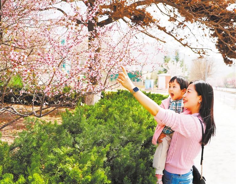 沿著黃河風(fēng)情線漫步,兩岸的花壇苗圃春意盎然,桃花、杏花、玉蘭花等各種花卉競相開放,美不勝收。在這如畫的景色中,市民們或三五成群,或攜家?guī)Э?,在花叢中穿梭,拍照留念,享受著春天的美好時(shí)光。