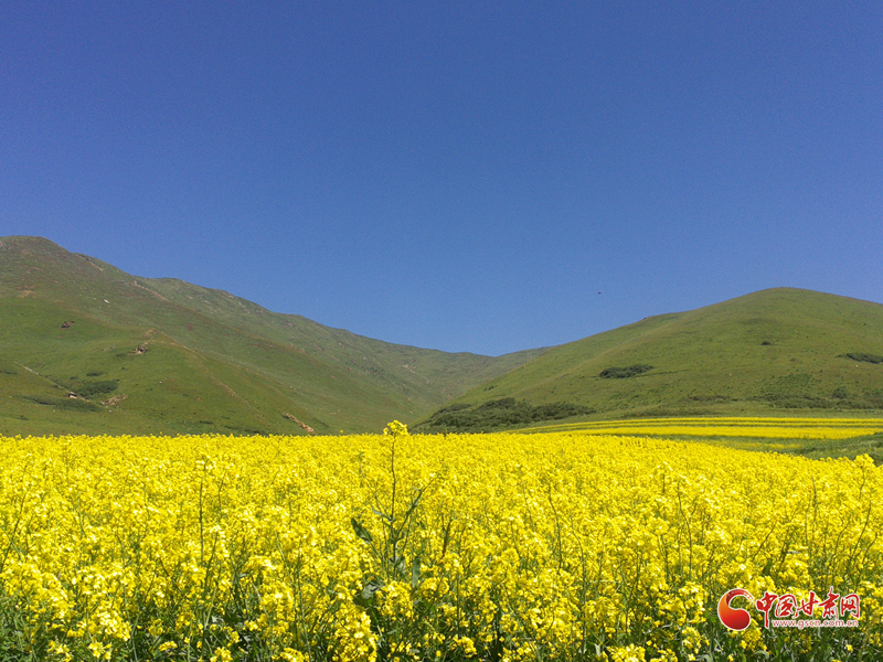 大山深處,秋風嬉戲,藍天澄碧,大地金黃,白云悠然。蜂鳴,蝶舞,花香混合著泥土的芬芳,天地猶如一幅散著金光的風景畫,渾然一體,如夢似幻。赤腳踩在綠油油的嫩草上,癢癢的,柔柔的,酥酥的。如母親的懷抱,舒適而安寧?;ê8呛⒆觽兊奶焯茫诶锩娲驖L,摔跤,捉迷藏……揮灑無邪的童真。這時,或在花間嬉戲,或在花徑漫步,或在山野奔跑,或干脆在觸手可及的藍天白云下,枕著花香,靜靜一眠,把自己放逐在原野上,身心兩忘,回歸一個沒有謊言的世界。安靜,正如無邊無際的虛空;澄澈,又像一望無垠的凈土。清新的空氣,寂靜的原野,一切都是那么凈,靜。一切都融入自然,回歸純真。圣潔,澄凈,忘世,忘機,忘我,又那么浪漫。油菜開始開花。一開始是綠葉叢中一點黃,就好像是綠色的海洋里揚著黃色的一桅風帆。接著是倆桅三桅……有一天你會發(fā)現(xiàn)綠色的海洋消失了,取而代之的是一片金黃色的閃著耀眼光芒的海平面。微風過處,黃色的波濤此起彼伏,后浪推著前浪。有蜜蜂在花間穿梭,時而飛起,時而停在花蕊中辛勤地采著花粉,工作間隙還不忘嗡嗡地哼著歌。蝶兒翩翩飛舞在花海,兒童急急追蝴蝶。好一幅“兒童急走追黃蝶,飛入菜花無處尋”的畫面。白色蝶兒猶如黃色海面上飄著的白云,黃色蝶兒歇息在花的枝頭,你分不清是蝶兒變成了花還是花變成了蝶兒。山區(qū)的油菜花和川區(qū)的油菜花又有著迥然不同的風采。
