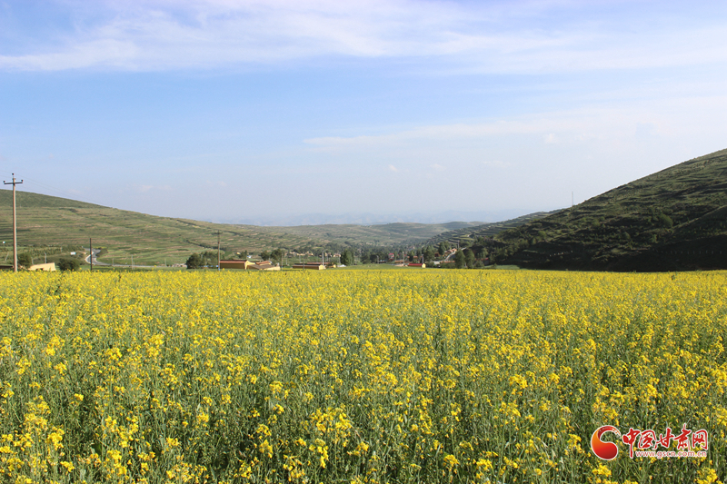 沿著普銀公路來到了被譽為“臨洮最北面的鄉(xiāng)村”的上營瓦窯灘村。這是個寧靜美麗的小山村,秋高氣爽,這里有一大片黃澄澄的油菜花地。一下車,站在普銀公路邊上,一眼望去,田間地頭,成片的油菜花與藍天白云青山交相輝映,村舍藏匿于廣闊的油菜花叢中,蜜蜂、蝴蝶在花叢中翩翩起舞,恰似一幅美麗的田園畫卷。
