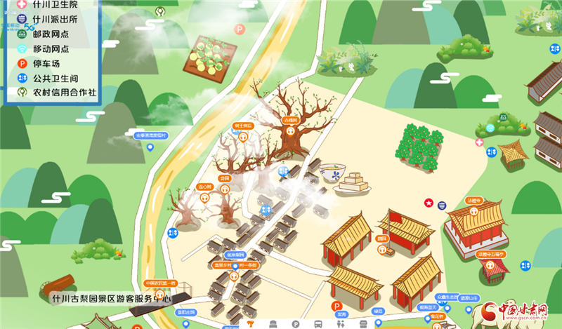 由于百年古梨園位于村落之間,占地面積大且道路蜿蜒曲折,許多外地游客在這里總會(huì)因?yàn)槁窙r不熟或者看不懂紙質(zhì)地圖而走很多冤枉路。針對(duì)游客的這一痛點(diǎn),中國(guó)移動(dòng)甘肅公司蘭州分公司依托云網(wǎng)融合和數(shù)字化服務(wù)優(yōu)勢(shì),為什川梨園及周邊景區(qū)量身打造了5G+VR手繪地圖智慧導(dǎo)覽服務(wù),根據(jù)當(dāng)?shù)仫L(fēng)格特色定制手繪地圖,展示當(dāng)?shù)鼐包c(diǎn)及場(chǎng)所地標(biāo)名稱,并可結(jié)合語音講解充分展現(xiàn)歷史背景、文物故事、人物典故等景區(qū)相關(guān)信息,真正讓每一位游客感受到“一部手機(jī)游梨園”的便利。