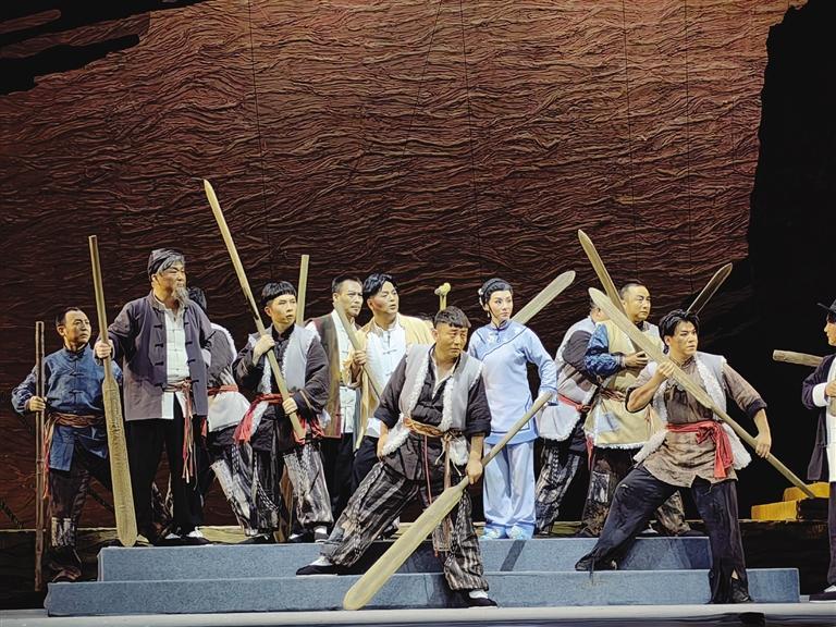 中國甘肅網(wǎng)5月21日訊 據(jù)蘭州晚報報道(記者 高宏梅 文/圖)酣暢淋漓的“花兒”唱出了黃河兒女的人間悲喜,韻味濃厚的“嘛簧”一唱眾幫,隴劇戲曲張力無限,“羊皮筏子賽軍艦”的熱血故事成就走心之作……5月19日晚,國家藝術(shù)基金資助項(xiàng)目原創(chuàng)隴劇《大河?xùn)|流》在黃河劇院成功首演,隴劇“梅花獎”甘當(dāng)配角,“青春力量”首挑大梁,出新出彩的優(yōu)異表現(xiàn)贏得滿堂彩。