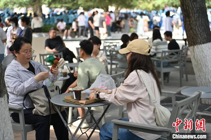 6月19日,甘肅省博物館藝術(shù)生活館在甘肅蘭州開館。該館是甘肅省博物館打造的一處復(fù)合型高價(jià)值文化空間,融合了咖啡、烘焙、展覽、藝術(shù)書店、文創(chuàng)銷售等多樣化業(yè)態(tài)。圖為游客挑選完文創(chuàng)產(chǎn)品后,享受“文物咖啡”和烘焙甜點(diǎn)。中新社記者 李亞龍 攝