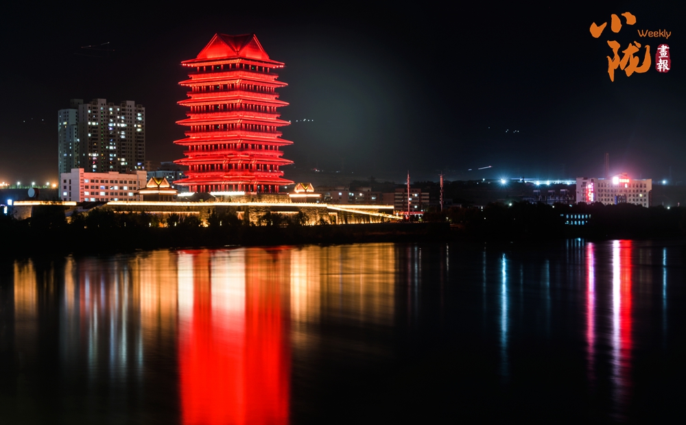 夜幕降臨,黃河之濱上的標(biāo)志性建筑——蘭州黃河樓被點亮,顯得愈發(fā)美輪美奐。古風(fēng)樓閣倒影在水中泛起粼粼波光,璀璨奪目的燈光點燃金城夜色。