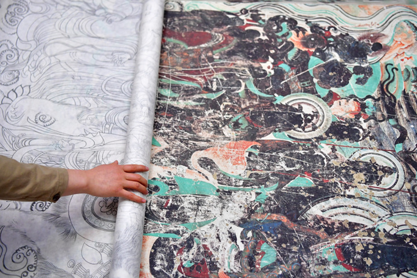 1989年年初,中國敦煌莫高窟465號窟內(nèi)的五處元代壁畫被盜。破案后,敦煌研究院立即組織有關(guān)專家將這些支離破碎的壁畫拼接粘合,以高超的技藝復原,然后按照圖片檔案資料進行描繪,使它們基本上恢復了被盜之前的本來面貌。