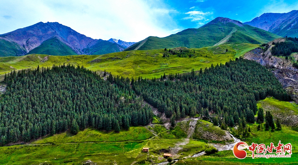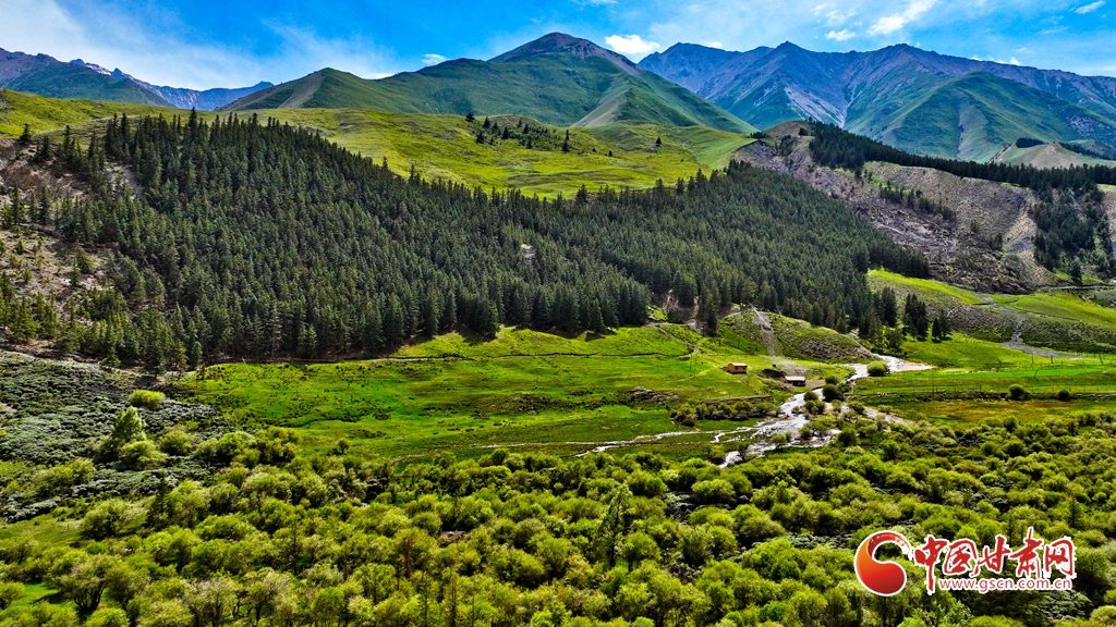 7月2日,祁連山國(guó)家公園甘肅省張掖市肅南裕固族自治縣大河鄉(xiāng)段,在高原藍(lán)天白云映襯下,群山環(huán)抱、 雪峰高聳,鳥鳴聲陣陣的濕地、奔騰不歇的黑河水、猶如“巨幅綠毯”的草原,勾勒出一幅風(fēng)光壯美的生態(tài)畫卷。