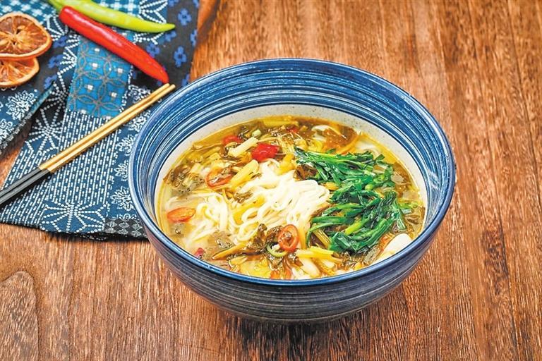 從前漿水面乃家常便飯,吃肉食葷才算改善生活,如今生活越來(lái)越優(yōu)裕,漿水面一變成為餐桌上“改頓”的吃食。無(wú)論家宴還是酒會(huì),一桌豐盛的酒菜之后,呈上一窩酸爽軟和的漿水面,既是特色主食,還能給飲者醒酒,實(shí)為飯局上畫龍點(diǎn)睛之筆。