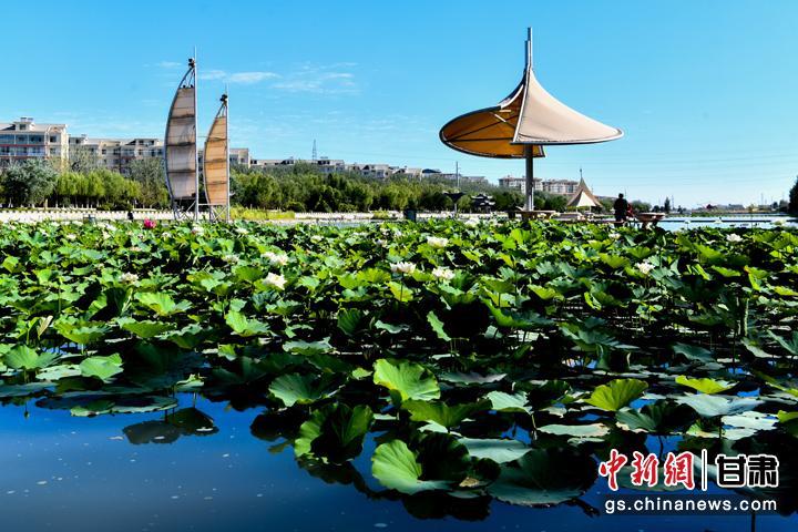 “接天蓮葉無窮碧,映日荷花別樣紅。”盛夏時(shí)節(jié),敦煌大漠綠洲持續(xù)高溫,鳴沙山下各種植物茁壯生長,黨河風(fēng)情線上的荷塘里荷花也競相綻放,紅的、白的,一朵朵,一簇簇,在微風(fēng)中搖曳,吸引眾多游人前來休閑避暑,賞荷納涼。王斌銀 攝