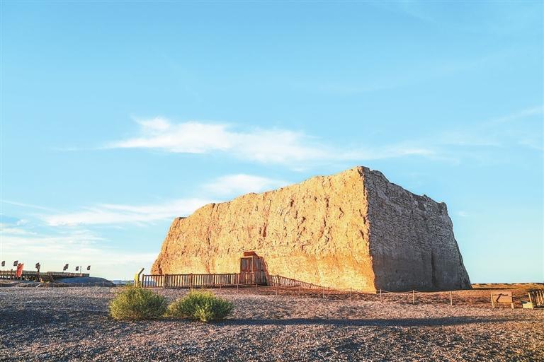 歲月洗禮,如今的陽(yáng)關(guān)已沒了蹤跡,只剩下一片叫作“古董灘”的洼地,和遠(yuǎn)處的陽(yáng)關(guān)烽燧。戈壁深處的玉門關(guān),被稱為“小方盤城”,走進(jìn)城中仍能感受到雄關(guān)莊嚴(yán)。往西5公里處,還能見到一段漢長(zhǎng)城頑強(qiáng)挺立。