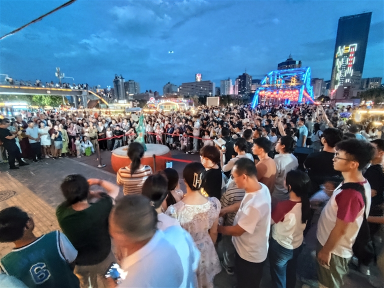 夜游黃河項目則圍繞黃金水道,結(jié)合蘭州南北狹長、“橋梁之都”的特點,串聯(lián)黃河母親、中山橋、白塔山,形成“夜游黃河”3條精品航線,開通水上巴士環(huán)線,并依托碼頭創(chuàng)新開展露營、草地婚禮等活動,全方位展示了黃河蘭州段魅力。同時,黃河之濱音樂展演、黃河市集等豐富精彩的活動也已經(jīng)成為“夜游黃河”的常態(tài)化演出和節(jié)目。