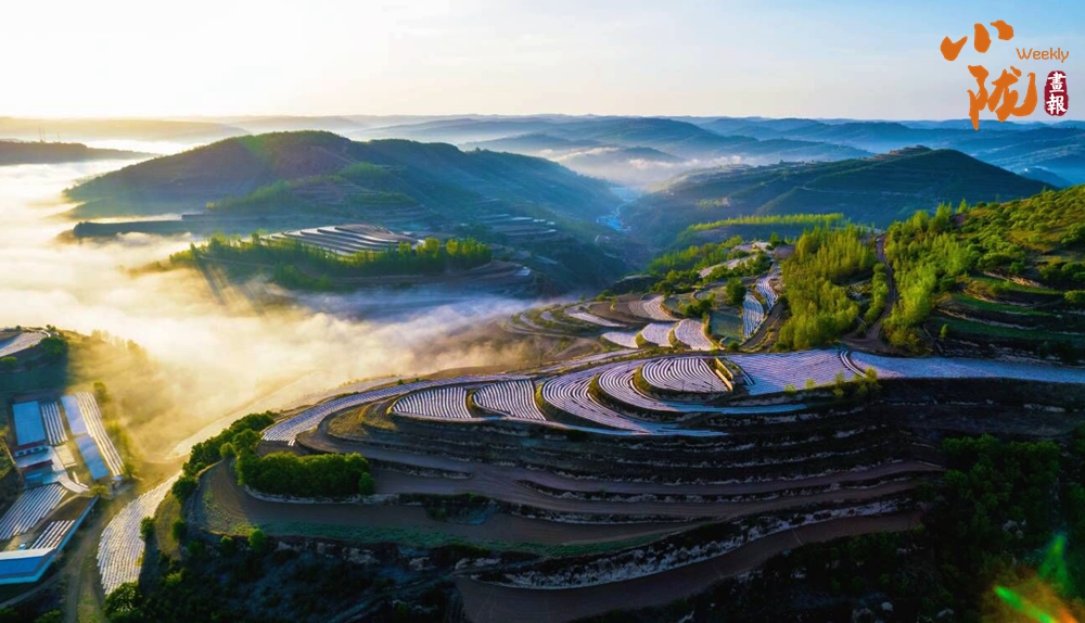 山脈連綿,綠染河川,云海奔騰,為這片黃土塬增添了無(wú)盡的魅力。