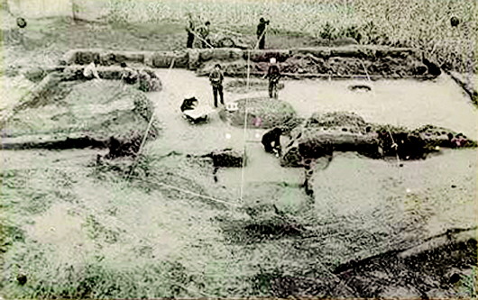 秦安大地灣遺址是1958年發(fā)現(xiàn)的,當(dāng)時正值全國文物大普查,隨即被列為省級文物保護單位。1978年開始發(fā)掘,總面積110萬平方米,現(xiàn)揭露面積13700平方米,出土房址238座、灰坑357個,墓葬79座、窯38座、灶臺106座,各種骨、石、蚌、陶器、裝飾器和生活器物共計8034件。特別是房屋建筑遺址,不僅規(guī)模宏偉,而且形制復(fù)雜。在發(fā)掘中就被公布為全國重點文物保護單位。