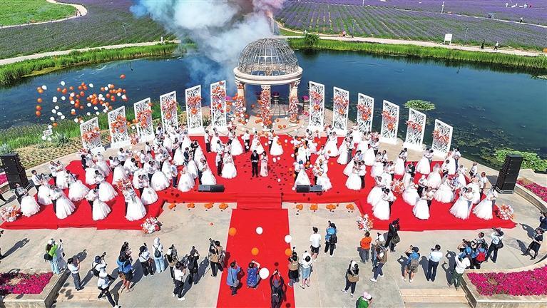 陽(yáng)光、微風(fēng)、花海……夏季的金昌紫金花海充滿浪漫氣息,溫柔而熱烈。6月29日上午,連續(xù)舉辦七屆的“遇見愛,遇見你”薰衣草集體婚禮如約開場(chǎng)。近年來(lái),一場(chǎng)場(chǎng)薰衣草之約集體婚禮引領(lǐng)金昌婚慶經(jīng)濟(jì)進(jìn)入一個(gè)快速發(fā)展階段,集體婚禮也成為金昌旅游對(duì)外宣傳推介的一張亮麗名片。