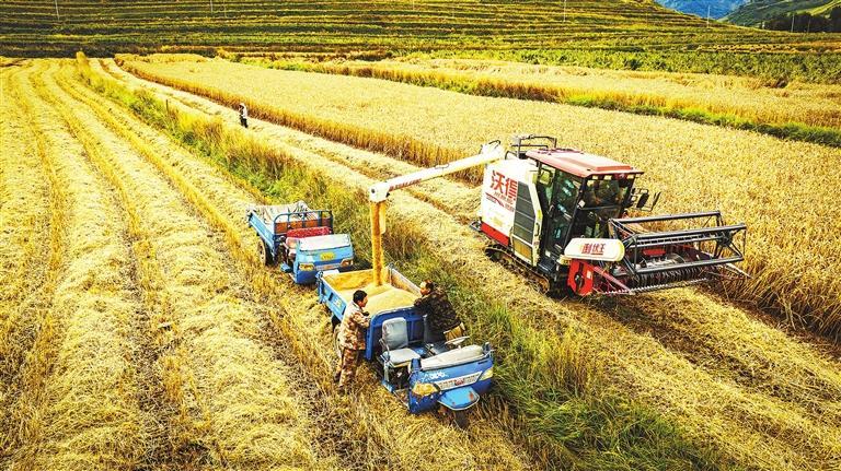 金秋時(shí)節(jié),千里隴原沃野飄香,一派豐收景象。定西市的馬鈴薯、甘谷縣的辣椒、武都區(qū)的優(yōu)質(zhì)水稻、張掖的制種玉米、酒泉和嘉峪關(guān)的制種南瓜……我省秋糧收獲漸次鋪開,一幅幅秋收圖景撲面而來,收獲的喜悅洋溢在農(nóng)戶的臉上。