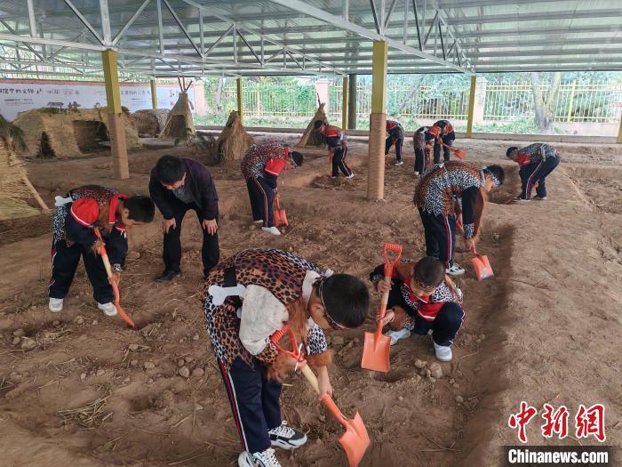 10月16日,大地灣博物館開展“史前工坊”特色主題社教活動(dòng),吸引大批孩子參與體驗(yàn)。 (秦安縣委宣傳部供圖)