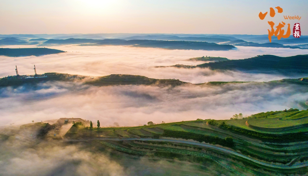 傍晚,空中泛起淡淡云霧環(huán)繞在溝壑之間,呈現(xiàn)出華池別樣的霧海景觀,遠(yuǎn)處一架架抽油機(jī)在上下舞動(dòng),“舞姿”靈動(dòng)而優(yōu)美。