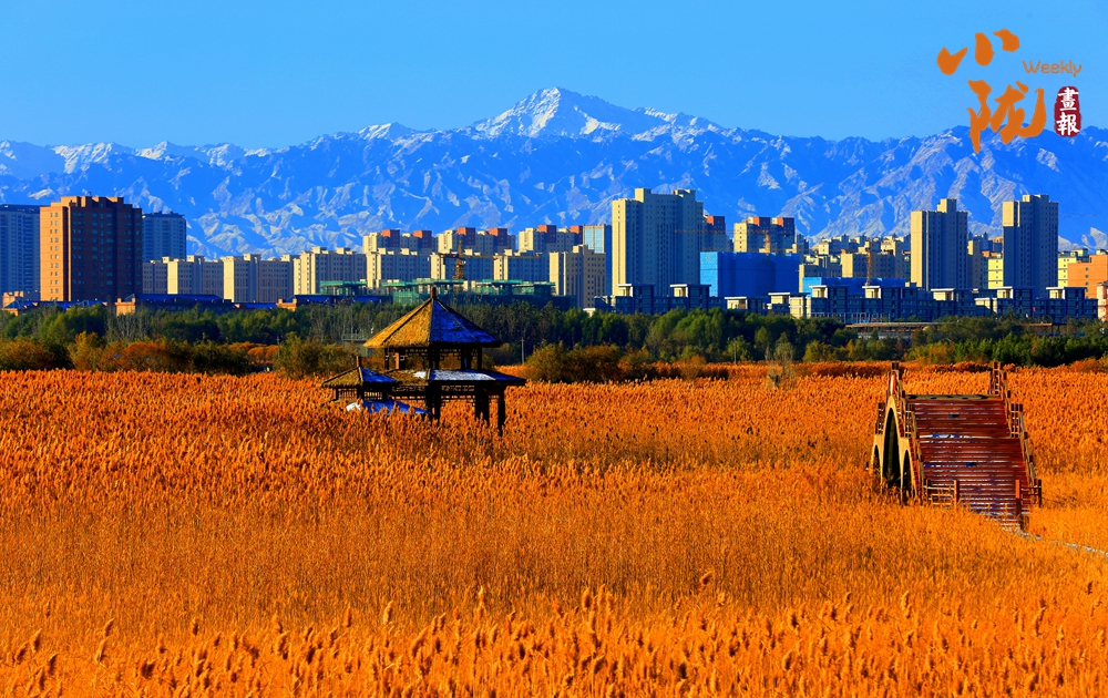 田園親昵,群樓挺拔,巍峨祁連。濕地公園里每一根蘆葦都像是一個(gè)靈動(dòng)的音符,在寒風(fēng)的指揮下,奏響了一曲壯麗的冬季交響樂。