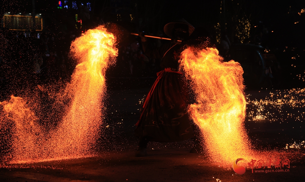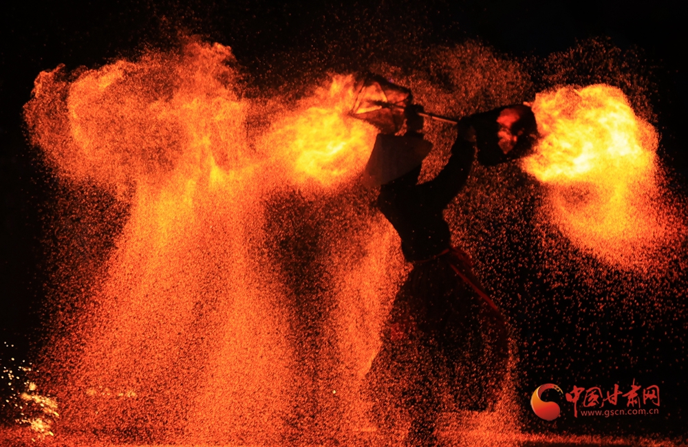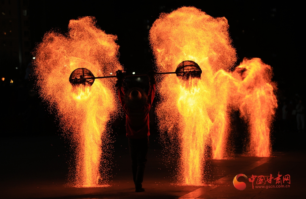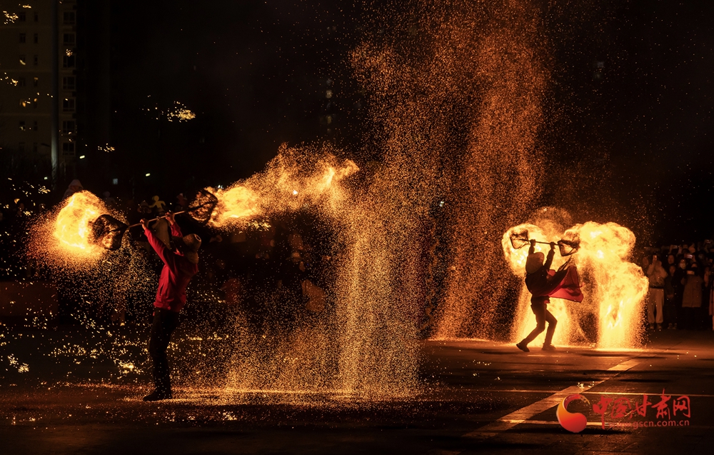 春節(jié)期間,在臨夏永靖劉家峽太極廣場上進行的打鐵花和火壺表演吸引了不少觀眾,營造了濃濃的節(jié)日氛圍。