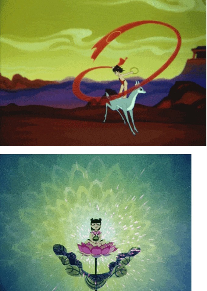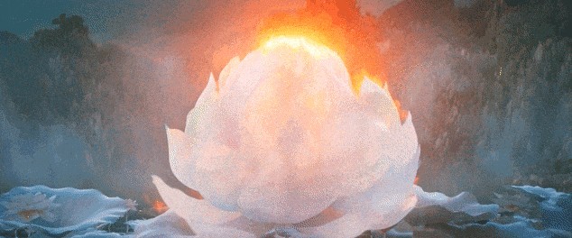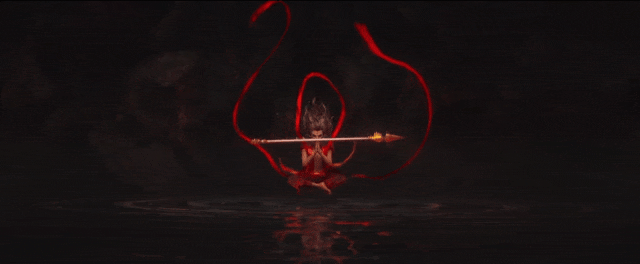 當蓮花綻放,哪吒從花瓣中走出,三頭六臂,手持火尖槍,腳踏風火輪,那一刻,傳說中的少年英雄涅槃了。