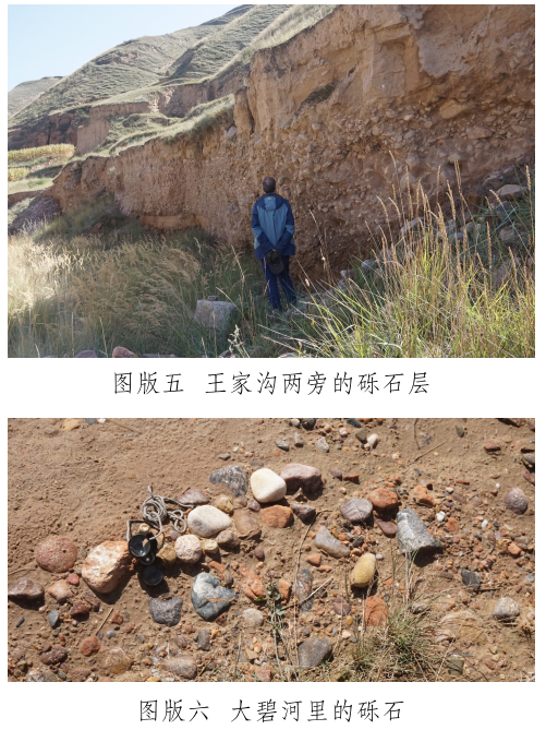玉石山南麓有一條自東向西流過峽口鎮(zhèn)注入洮河的河——大碧河,《狄道州志》里稱為“打璧河” [12]。玉石山和山下大碧河之間有幾條溝,這些溝是上玉石山的必經(jīng)道路,也是雨水夾帶山上的石頭注入大碧河的通道。在甘肅臨洮馬家窯文化研究院李家功的引領(lǐng)下,我們對大碧河中下游和通往玉石山的三條支溝進行了較系統(tǒng)的調(diào)查,調(diào)查方法是在訪問當(dāng)?shù)赜嘘P(guān)人員的基礎(chǔ)上,進行野外實地考察。大碧河連接玉石山的支溝主要有三條:第一條大溝是王家溝,是玉石山和峽口鎮(zhèn)之間的通道,大雨過后附近的村民往往會在這條溝里撿到玉石。在王家溝靠近玉石山的茨泉子村,十多戶村民都拿出自己在溝中揀到的十余件山流水玉料(圖版四)供我們觀察、檢測。玉料大小不一,大者長軸約30厘米,多呈次圓狀,均有玉皮,內(nèi)部質(zhì)地多細膩,肉眼鑒定和XRF檢測結(jié)果表明,玉石主要包括黃綠色(含草花)透閃石玉、透輝透閃石玉及透閃石大理巖,另外還有螢石料。王家溝下游匯入大碧河入口段,發(fā)育三級階地,前人使用大型機械開挖二、三級階地礫石層(圖版五),據(jù)說在其中找到較多玉料,現(xiàn)政府已叫停。在階地礫石層中我們也撿到淺黃綠色透輝透閃石大理巖及半玉化的大理巖礫石,這些礫石是玉石山玉礦的近礦圍巖。王家溝匯入大碧河,因此大碧河中也可以撿到從王家溝滾落的玉石山上的玉石和其它巖石。我們在大碧河峽口鎮(zhèn)段揀到較多直徑約3~5厘米來自玉石山的透閃石大理巖,巖石磨圓度高,成球狀或橢球狀,質(zhì)地較細膩。據(jù)當(dāng)?shù)厝酥v,也有人在大碧河峽口鎮(zhèn)段撿到過小塊的玉石;第二條溝是小溝——漆家溝,位于王家溝西面,雖位于玉石山正面,但鮮有聽到在溝里撿到玉石的消息;第三條溝是王家溝東面的石景峽,距離玉石山相對較遠,其溝腦是玉石山的東延部分?!兜业乐葜尽防镙d“打璧河,在州北三十里,源出石井峽,即打璧谷” [13]。這里的“石井峽”可能就是現(xiàn)在所說的“石景峽”,峽中腰有水冒出。但現(xiàn)在的大碧河不源于石景峽,而是源于洮河和渭河的分水嶺。石景峽雖可能是史籍上的打璧谷,且在峽里也撿到了透閃石大理巖礫石,但沒有發(fā)現(xiàn)玉石器和玉料。