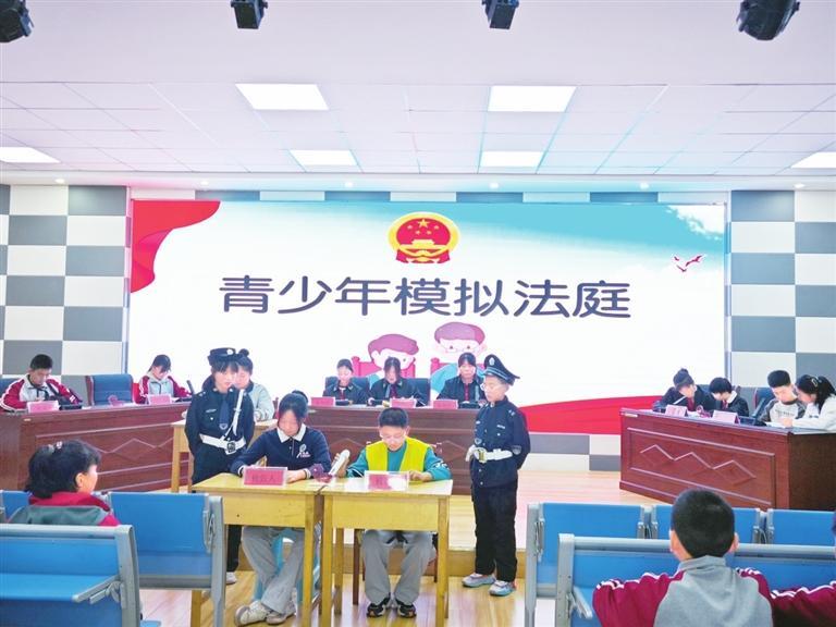 首先,在李青源律師的悉心指導(dǎo)和同學(xué)們的踴躍參與下,經(jīng)過前期的認(rèn)真彩排,同學(xué)們以模擬法庭的形式現(xiàn)場模擬了一起因校園欺凌導(dǎo)致的刑事訴訟案件。參與庭審活動的學(xué)生們沉浸式、體驗式、互動式參與其中,有序扮演著審判長、公訴人、辯護(hù)人等角色?;顒右沧屧趫龅钠渌瑢W(xué)認(rèn)識學(xué)習(xí)了法庭審判的全過程,身臨其境感受了校園欺凌會產(chǎn)生的嚴(yán)重后果,以及法律的威嚴(yán),引導(dǎo)青少年學(xué)會用法律保護(hù)自己。