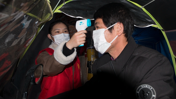 自疫情防控工作開展以來,湖北省咸寧市咸安區(qū)紀(jì)委監(jiān)委90后干部黃煬,始終堅(jiān)守防疫一線,參與卡點(diǎn)值守、入戶摸排、生活物資代購等工作,耐心安撫居民情緒,為他們進(jìn)行心理疏導(dǎo)。圖為黃煬為夜歸的居民測量體溫。(湖北省咸寧市咸安區(qū)紀(jì)委監(jiān)委 魯一凡 攝)