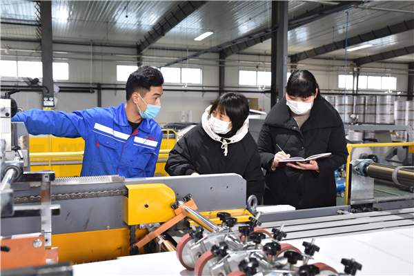 為切實(shí)幫助復(fù)工復(fù)產(chǎn)企業(yè)解決實(shí)際困難,安徽省滁州市南譙區(qū)紀(jì)委監(jiān)委女干部們組成“巾幗服務(wù)隊(duì)”,深入企業(yè)生產(chǎn)加工車間,開展調(diào)研走訪,跟進(jìn)督促政策落實(shí)。(安徽省滁州市南譙區(qū)紀(jì)委監(jiān)委 孫煒 攝)