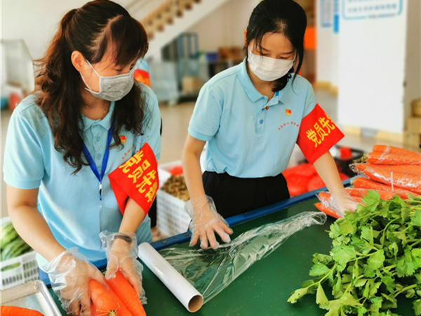 海南省保亭縣紀(jì)委監(jiān)委第一黨支部組織黨員先鋒隊(duì)下沉一線,保障疫情期間群眾的蔬菜供應(yīng)。(海南省保亭縣紀(jì)委監(jiān)委 王秋婷 攝)